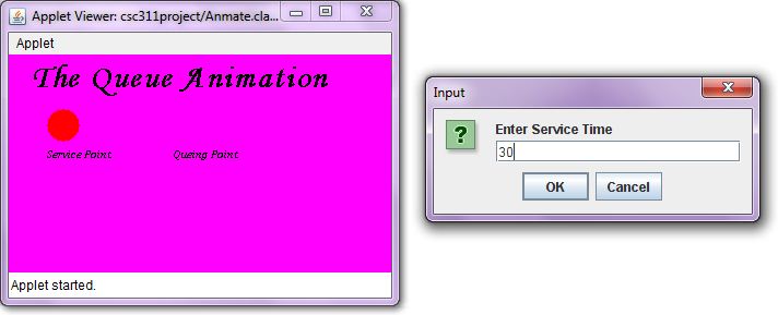 Time to kill (Goliath d' Animation), As i knew initially that this would take time, so I needed a constant laptop for programming, and my friend Kehinde came to my rescue by always giving me his Laptop both day and night. To animate in java, you need to be an applet master, but as for me i know how to go around stuffs, so i started reading e-books (3 java books at the same time i.e. Einstein) until i came across an applet program that moves a ball from left to right in a box. Then I copied the codes, implemented it and it was running, but that's not a queue model. Started reading over again to find out what each lines means, editing them until I was able to know how to move an element, stop elements and also print elements. These were the only things I used to build my queuing system, but if you see the codes, you will run.